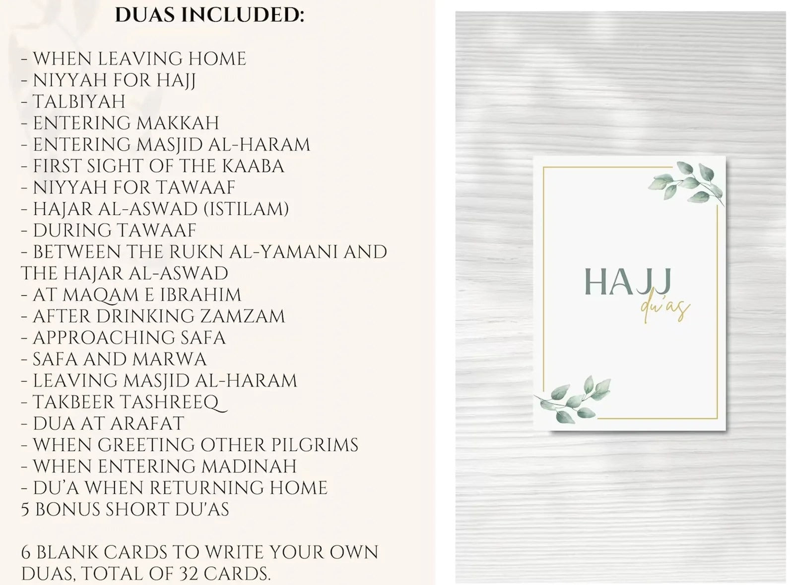 Hajj Dua Cards, Hajj Duas Physical Cards, Duas For Hajj, Hajj Flashcards, Hajj Duas PDF| Total of 32 cards.