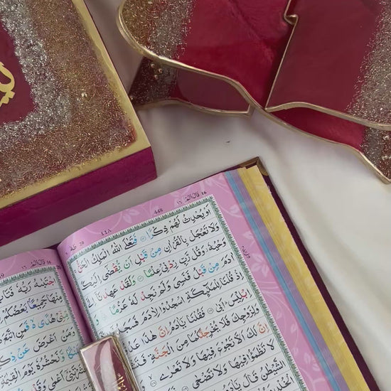 Maroon Elegance: Barkat-e-Jariyah Resin Quran Hamper | Quran Gift Set