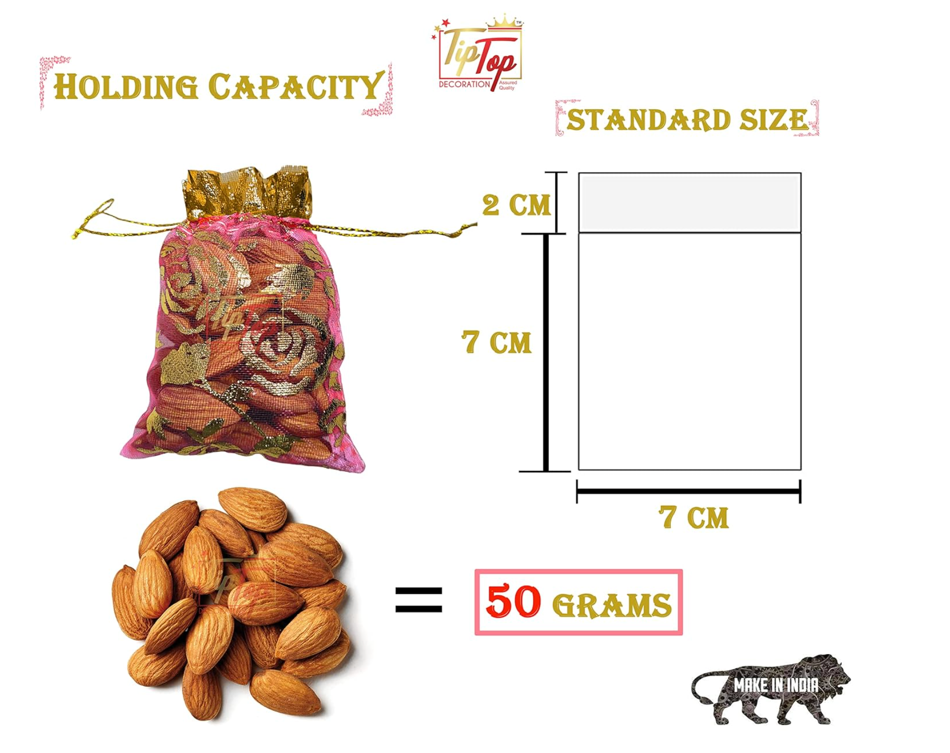Nikah Return Potlis (Size 7X9 Cm) (Floral Pattern) (100 Pieces, Saffron Gold) Only Potli