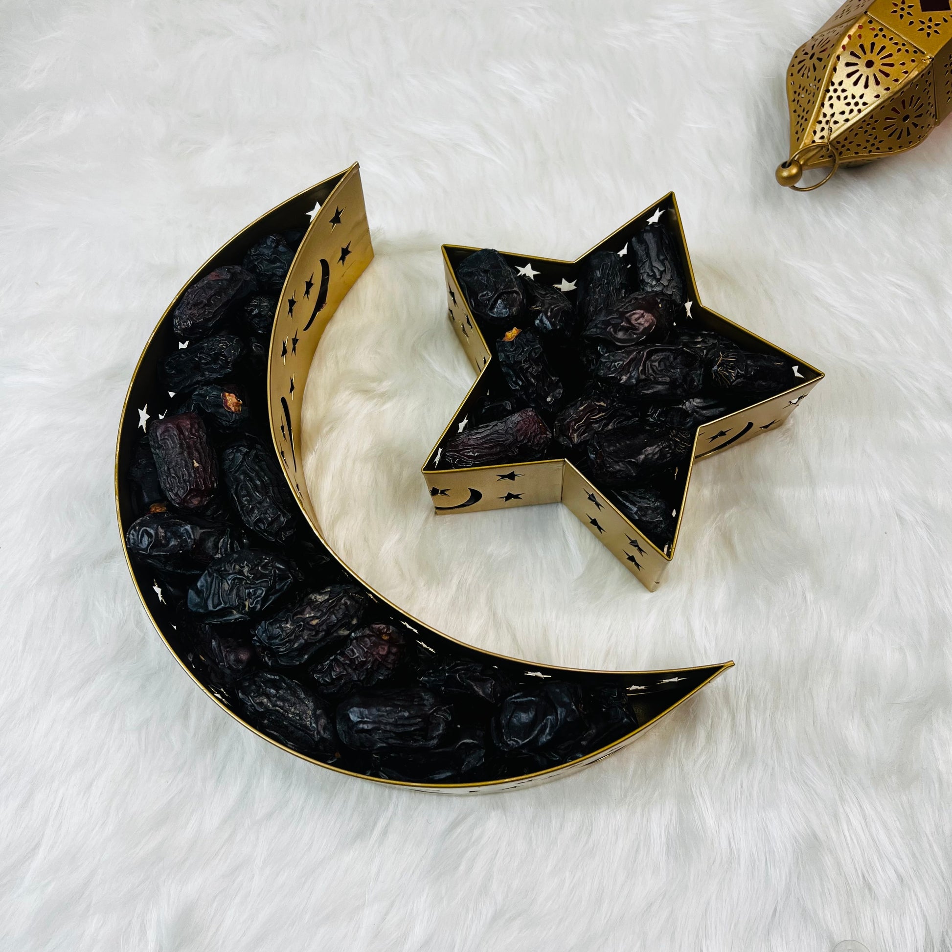 Receive the elegant crescent and star trays empty — ready to style with sweets, dates, chocolates, dry fruits, or festive décor as you wish. Ideal for creative gifting or home styling.
